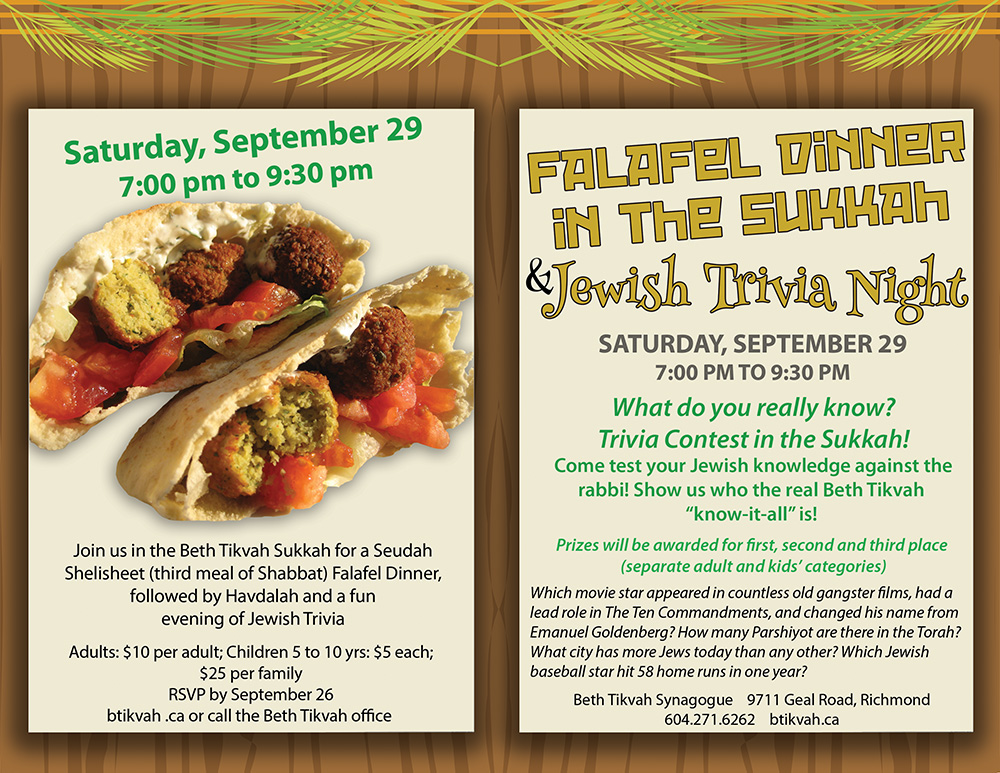 Falafel Dinner in the Sukkah and Jewish Trivia at Beth Tikvah